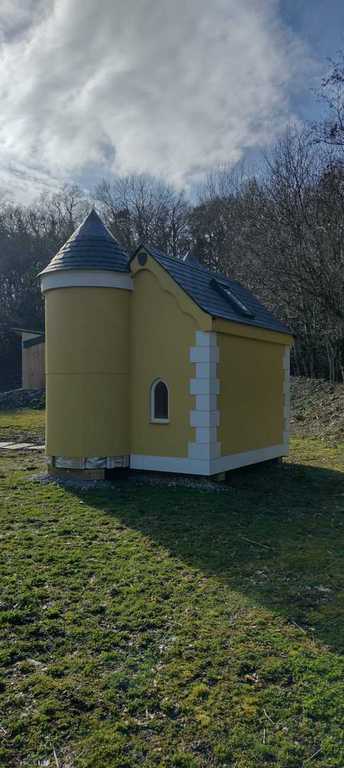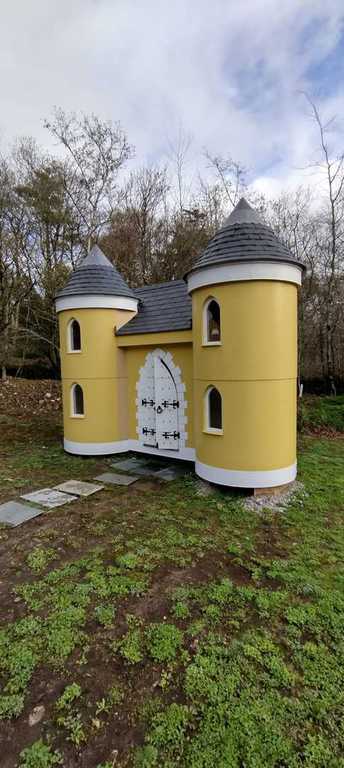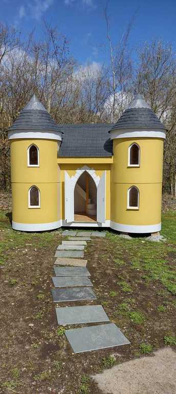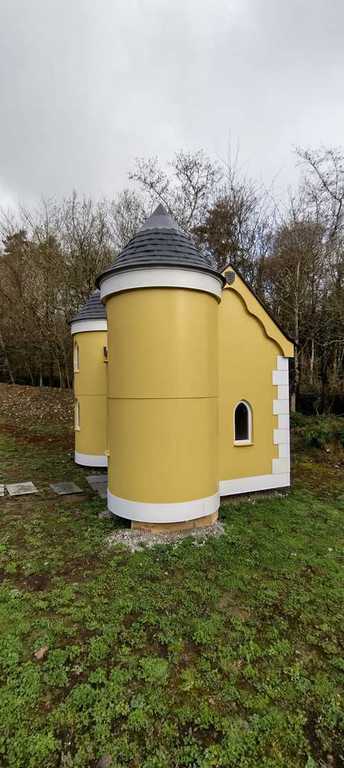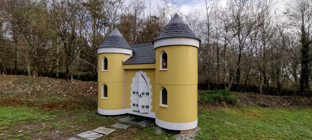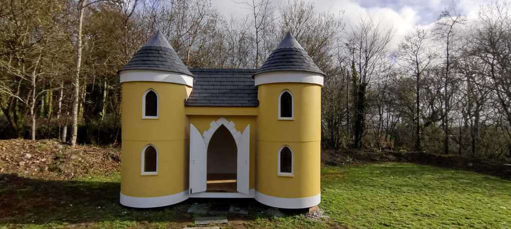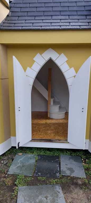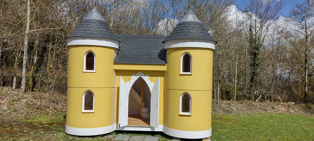 Chateau Reves d'Enfance - the Castle of Childhood Dreams - a Wendy House of the highest order. Manufactured just like a house. Main body fully insulated and with Britmet Lite Slate recycled plastic slate roof capped with lead; an external finish of Tricoya Extreme (waterproof MDF) which can be redecorated at your whim. Internally a staircase and mezzanine (removable) with the walls in Tricoya Extreme. This childhood dream has a lifespan of 60+ years and is designed to be used from childhood to adulthood.